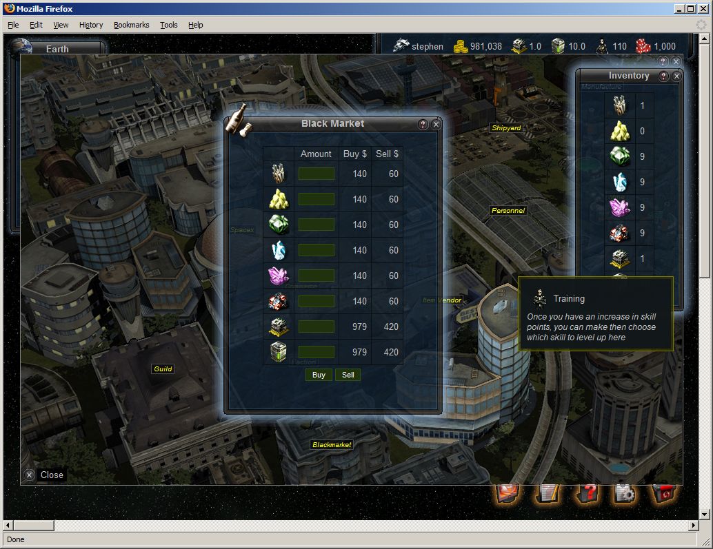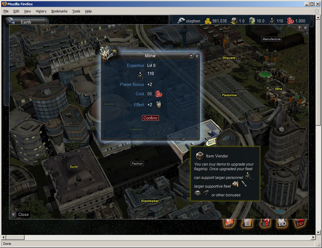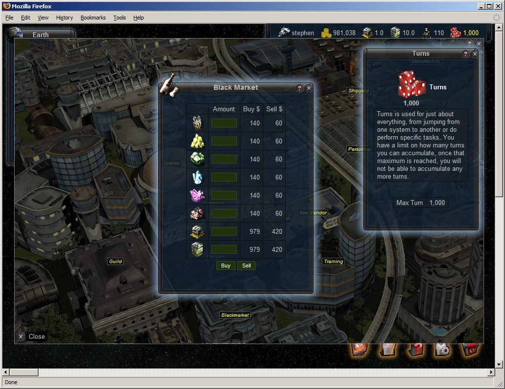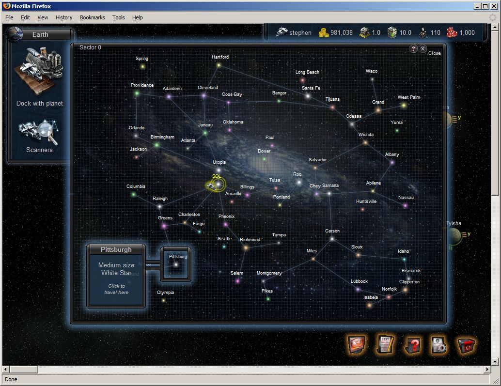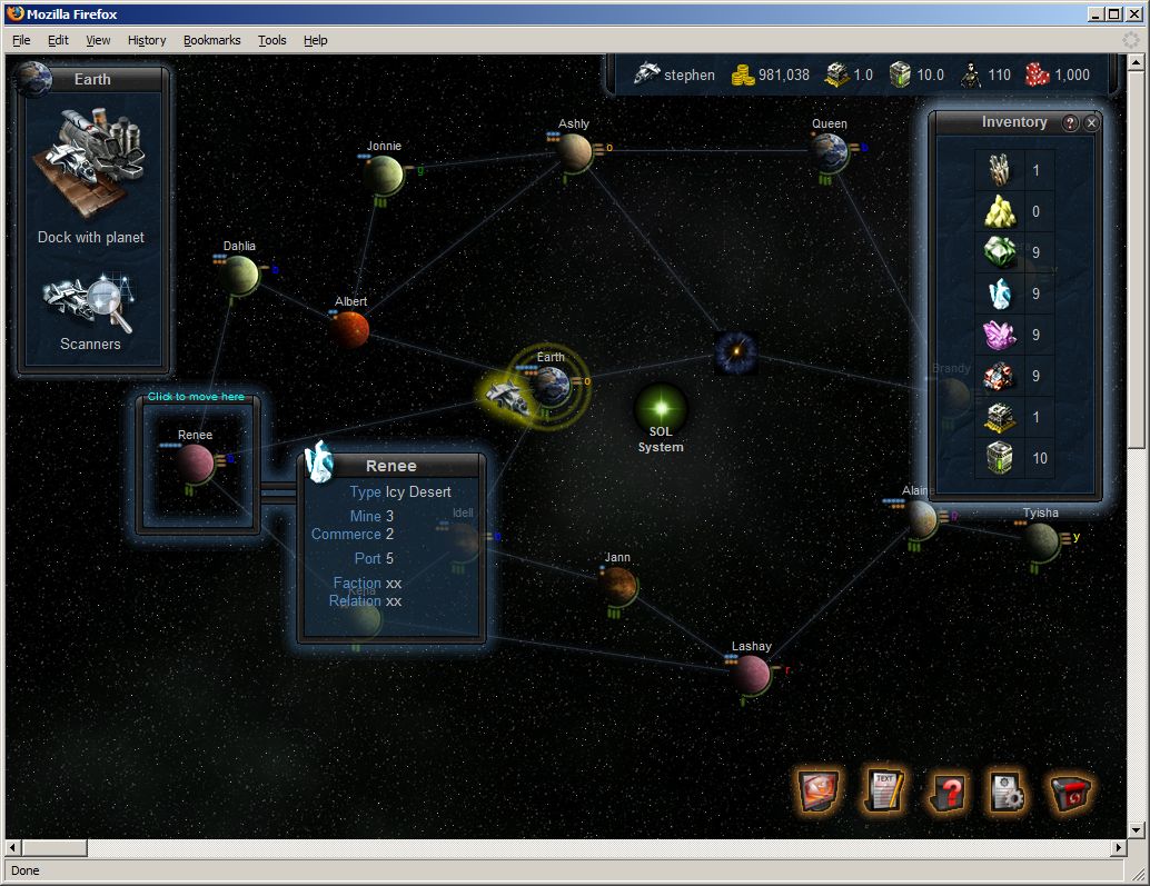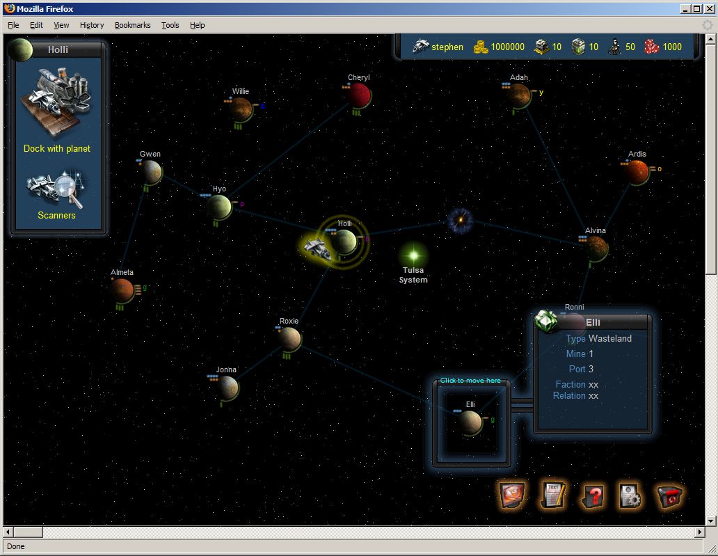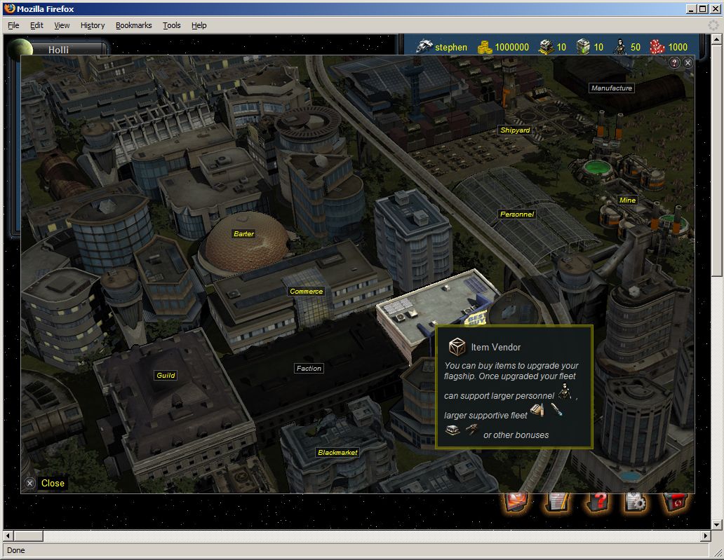 Players fly around in their own space ship which they can buy/sell to either upgrade or downgrade their space ships, and each space ship can be equip with various items that features personel, armor, weapons, cargo, resource mining or generation, transport of people (think taxi), engines, warp drives, scanners and the list goes on.