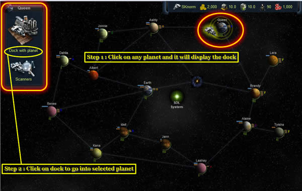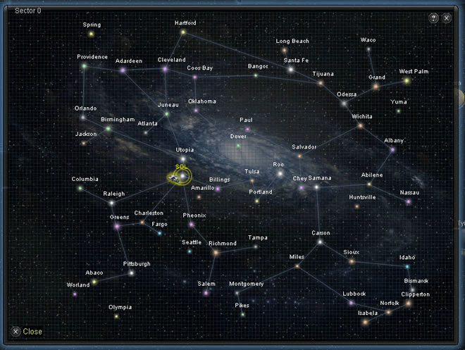 Players can use jump-gates for instant travel or manually fly to explore the map. Some hidden star systems or jump-lanes will appear if you fly close enough to them and is not display on the `galactic map`.